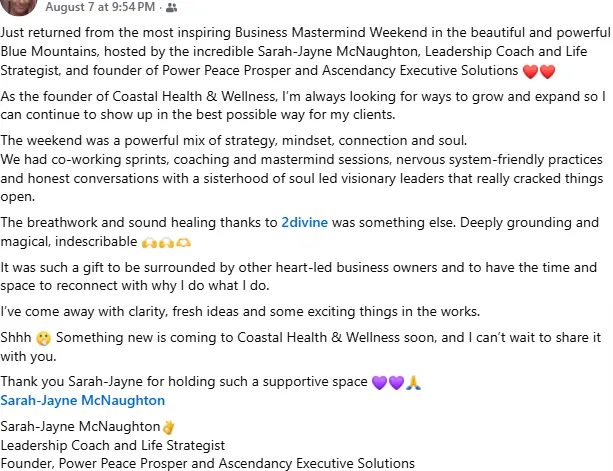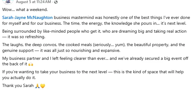 Most coaching gives you either mindset work or strategy — rarely both, and almost never with the level of personalisation that creates real change. What makes this different is that I start by genuinely understanding your specific business, your situation, and your blind spots before I say a single thing about what to do. You don't get a generic program. You get a plan built around you — and someone in your corner every step of the way making sure you actually execute it.